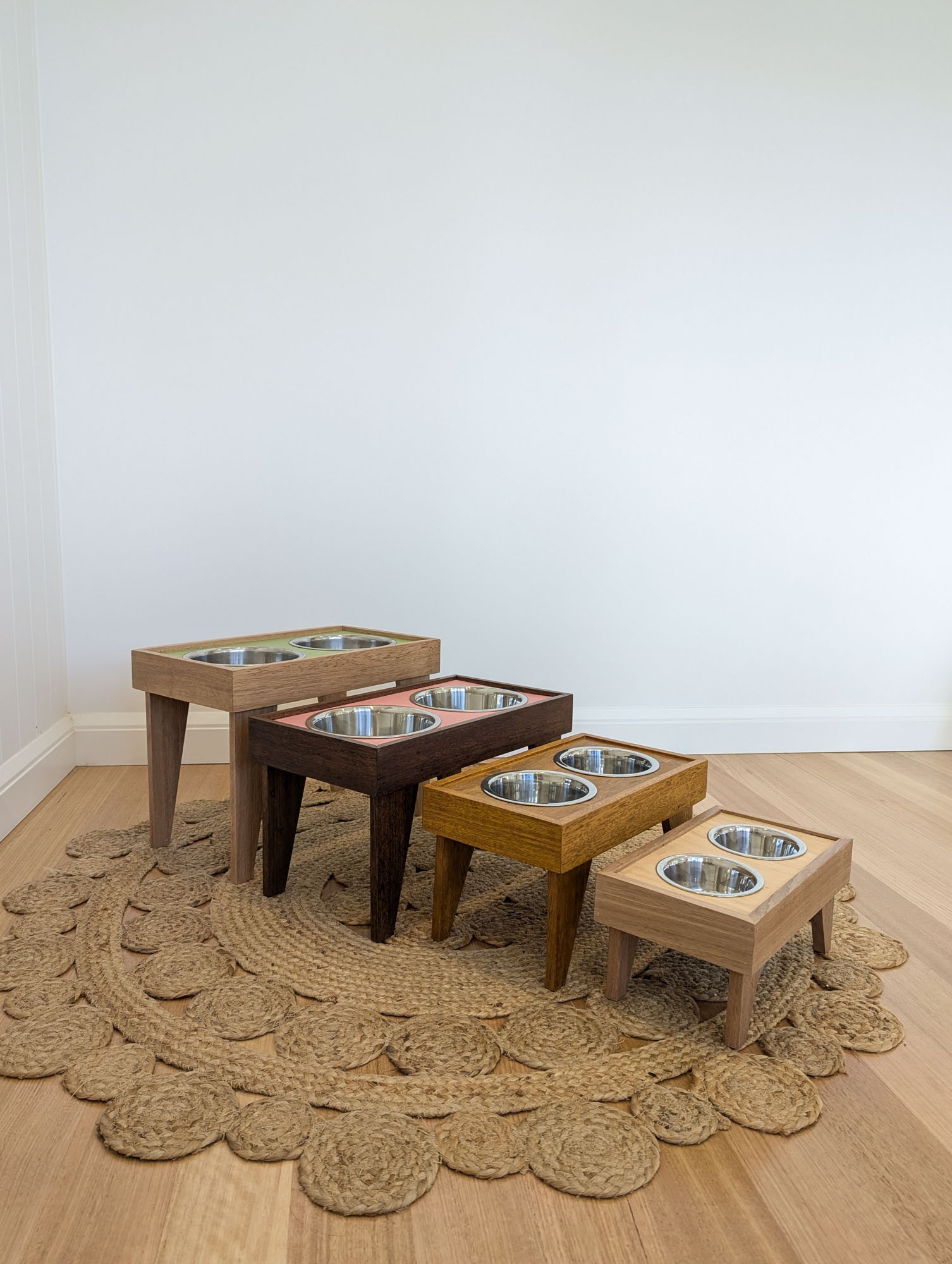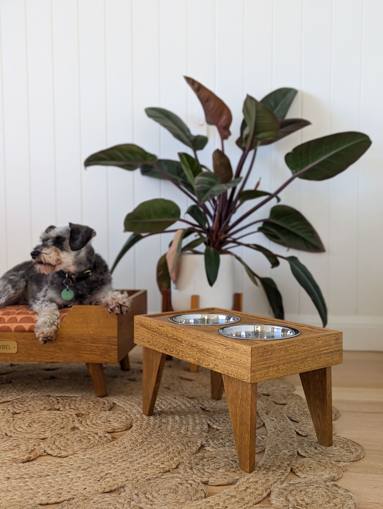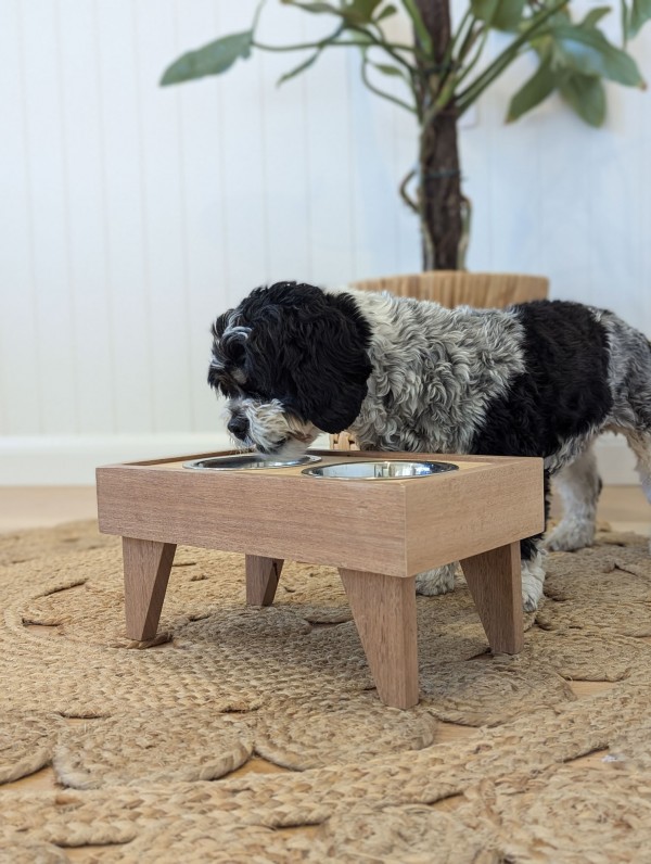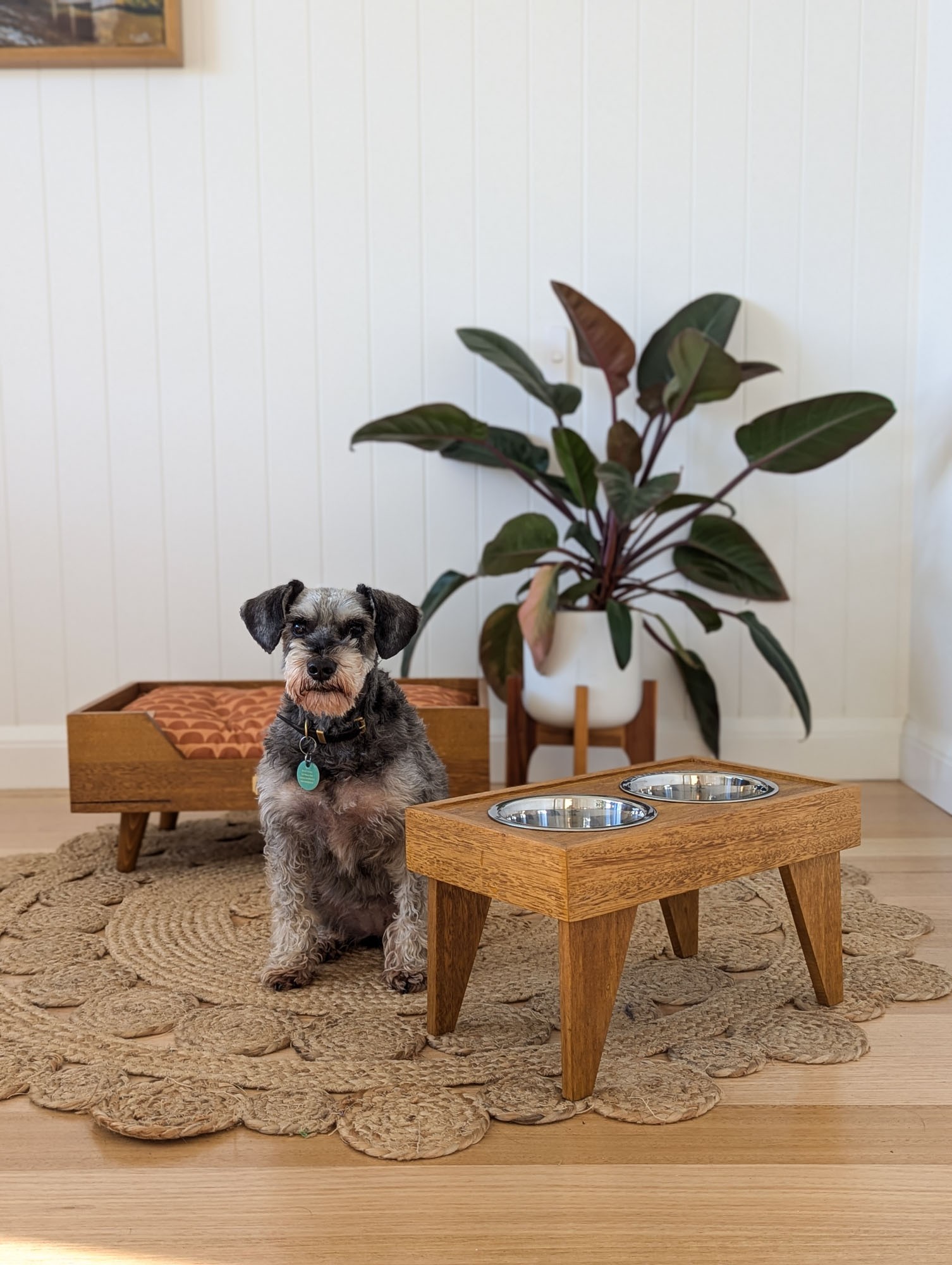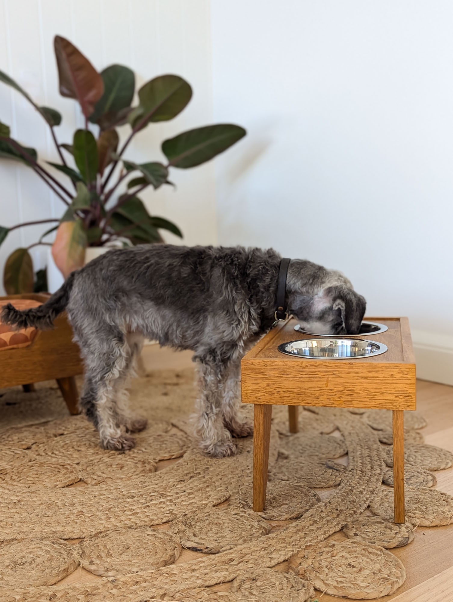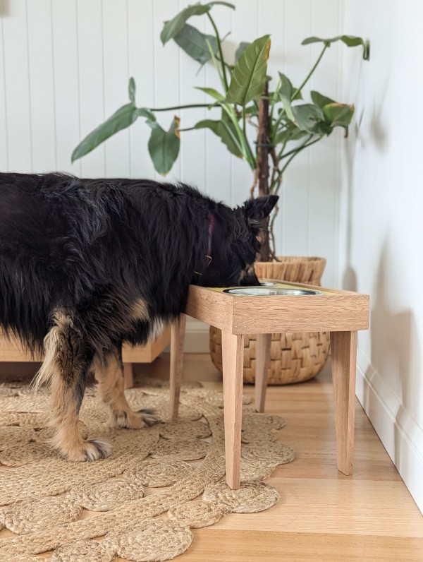 We've designed our stands to bring your dog's food to them so they can eat and drink at the ideal height for optimal digestion (with a straight spine). With their food and water bowl at a more appropriate height your dog will not only be able to eat easier but also cleaner as our stand keeps their food in the one place, catching any crumbs and splashes. Designed to look great in any space our dog bowl stands are the perfect solution for decluttering their feeding area while elevating their bowls off the ground for easy cleaning.