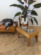 Each stand is hand made to order with reclaimed Tasmanian oak legs and frame and a ply-wood inset that can be customised with a feature colour or matching timber stain. Our frames are sealed with a matt sealant to protect them from water and food and the ply wood inset is painted and sealed twice prior to being fixed into the frame.